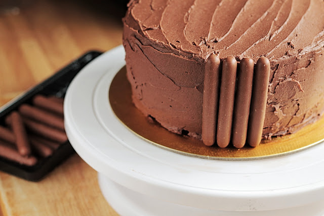 Three 114g boxes of Cadbury Chocolate Fingers will be enough for this 7" cake (with some left over for the cook!!)