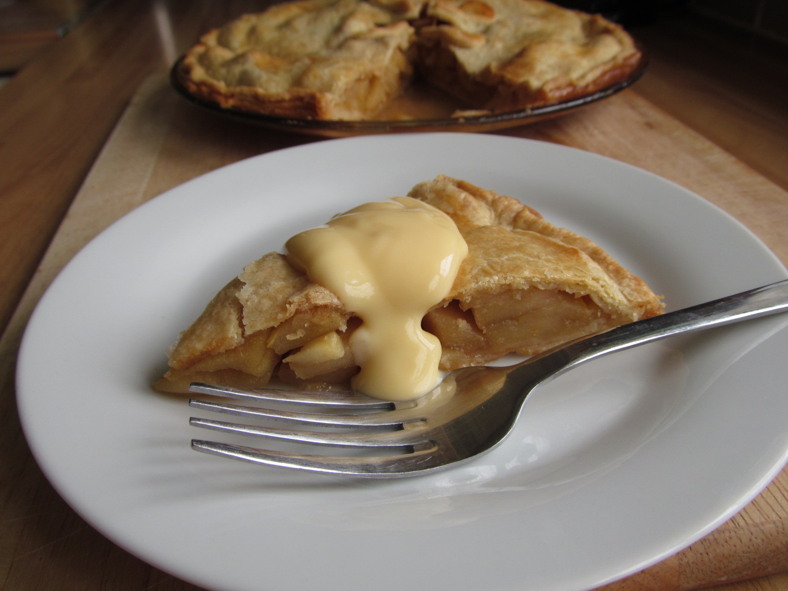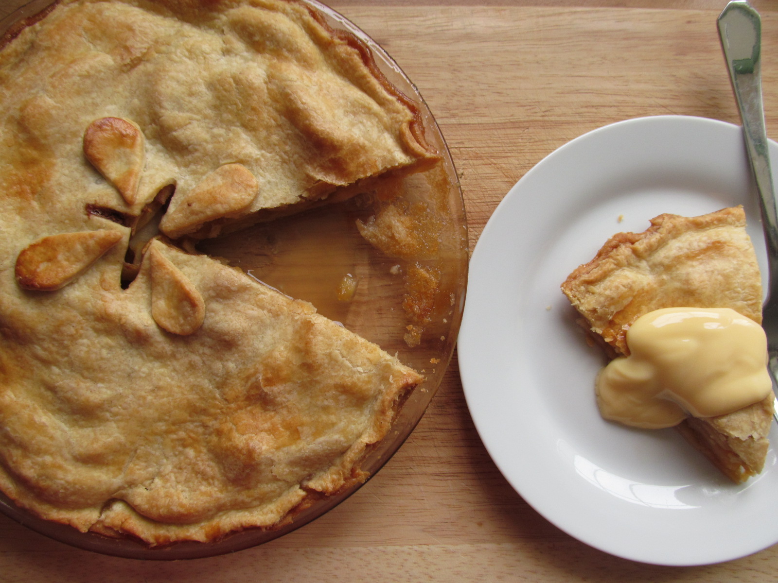 This was the one recipe that I remember from home the most, it hot from the oven and with sweet custard. My mother had a tin plate that was black from use but it didn't diminish the taste in any way!