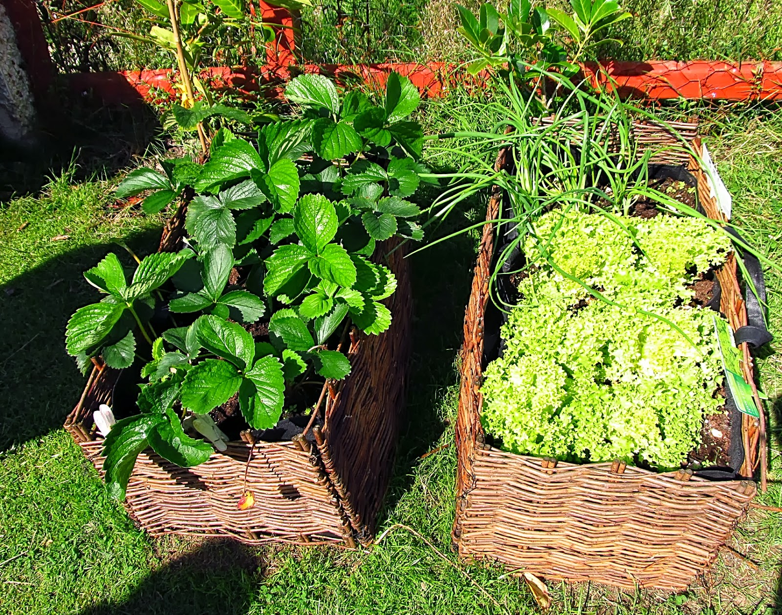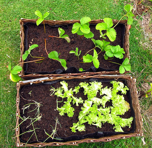 This summer was in Irish terms, a cracker. The ground turned from a muddy brown to bright green, for the first time in years it wasn't water logged. So I cautiously ventured forth in my quest to grow a vegetable or two. I started with some salad leaves. I bought two willow salad planters, a couple of reduced to clear (well this isn't going to work, right?) plug plants and sat down in the warm summer sun to plant.