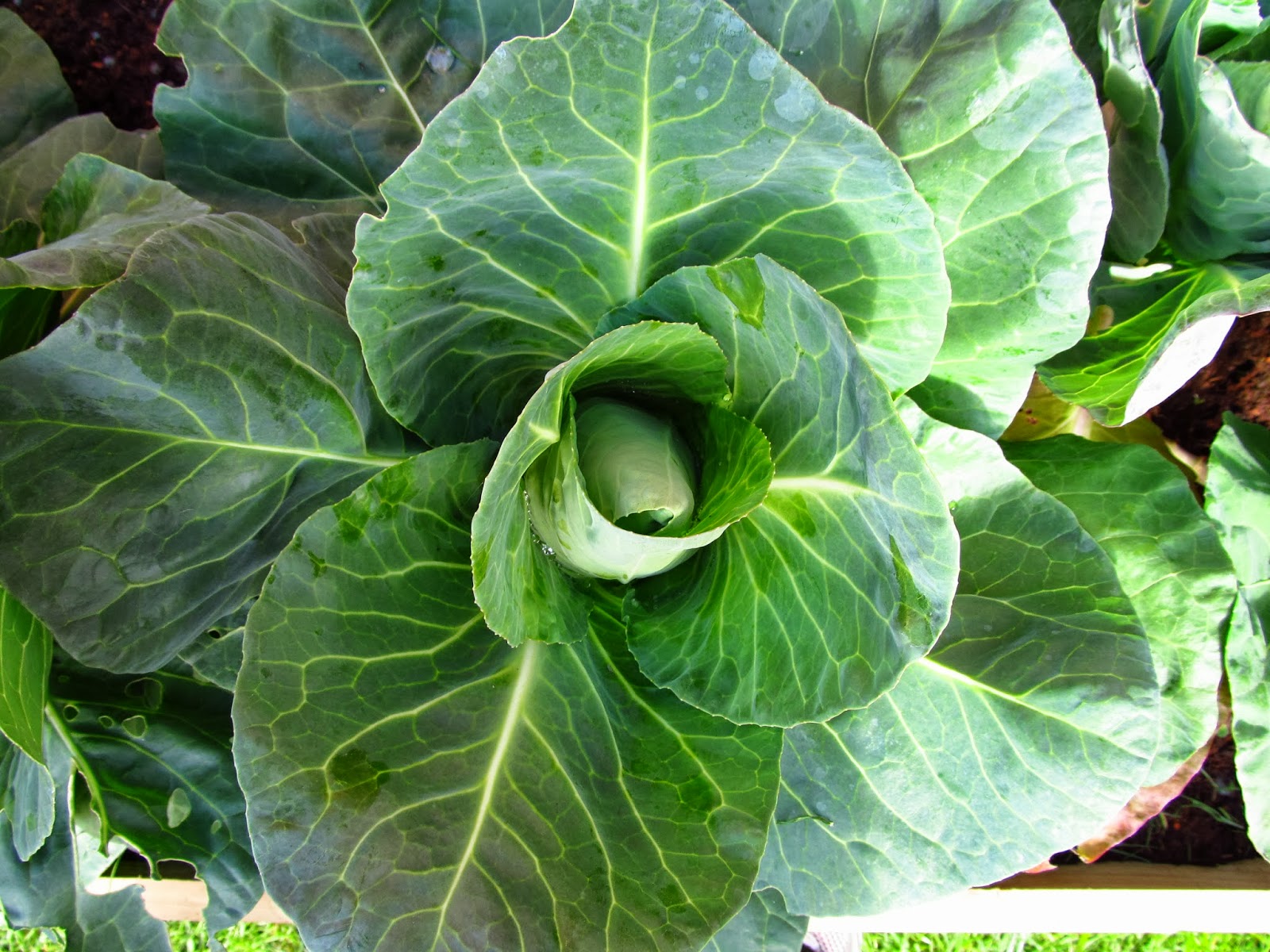 In that garden center clearance sale, I also picked up a tray of twelve Hispi Cabbage plants. Initially I planted them in the many leftover herb pots I had lying around, but before too long they outgrew them.