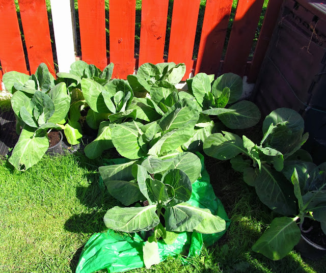 Here are our beautiful cabbages now, very happy in their new home. The are almost organic (do slug pellets count?) as you can tell from their Caterpillar eaten leaves, but looking strong and healthy.