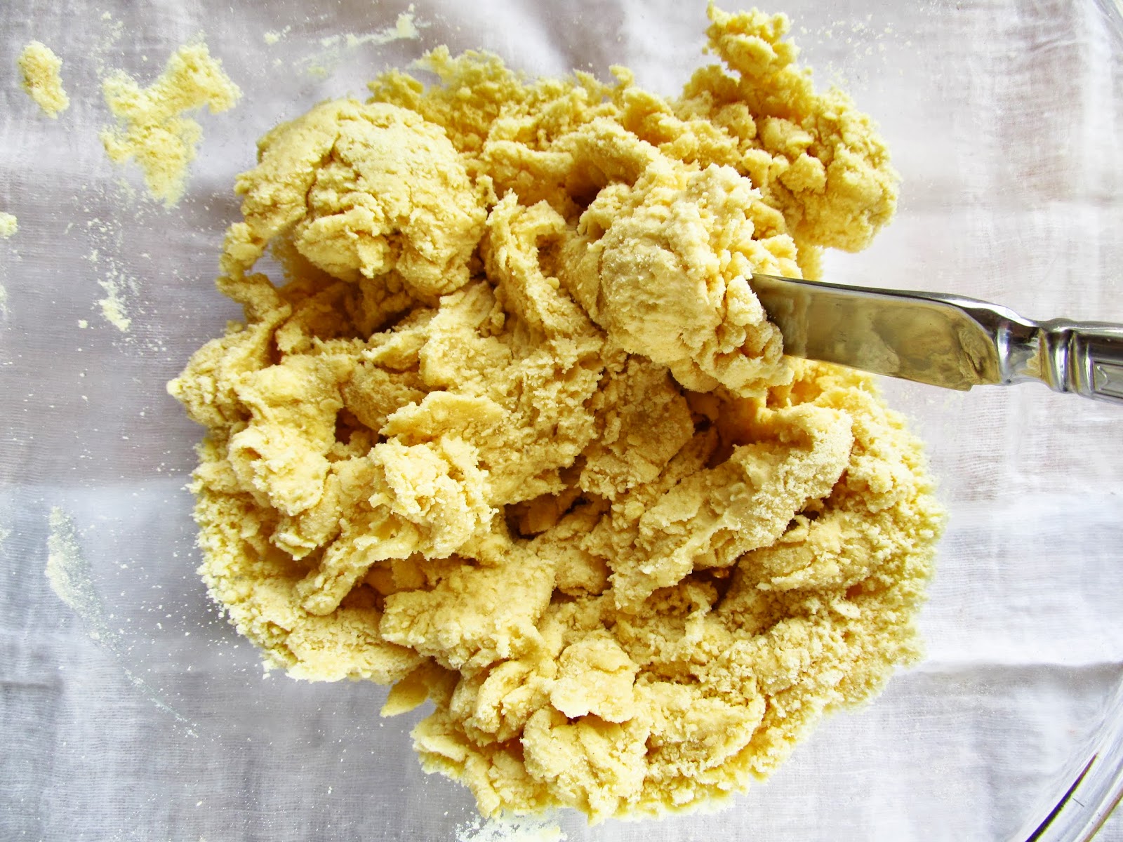 Add the cold water one tablespoon at a time and mix together with a blunt knife until the pastry begins to come together.