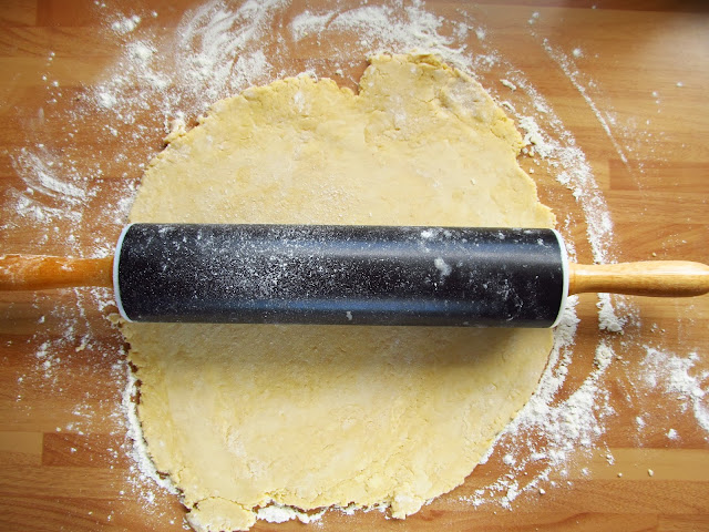 When the pastry has rested, roll out on a lightly floured surface until it is about 2-3mm thick.