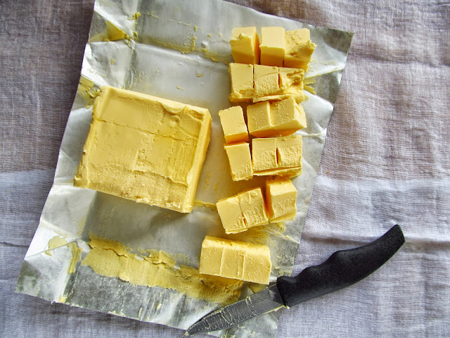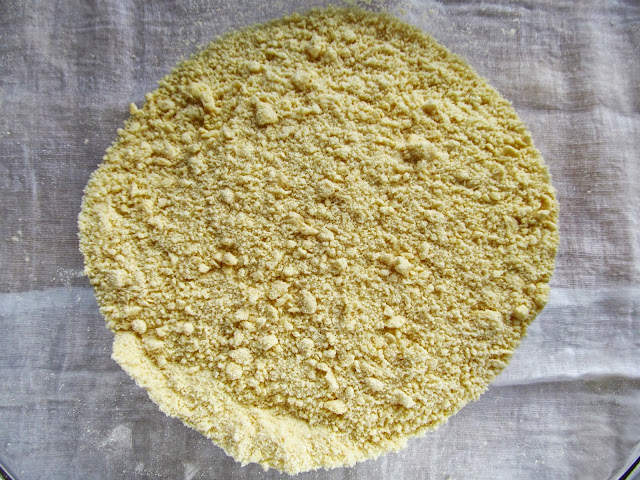 Rub the margarine into the flour with your fingertips until it resembles wet sand. It is important to use your fingertips as they are the coolest part of your hand, the butter or margarine needs to be cold for crumbly pastry.