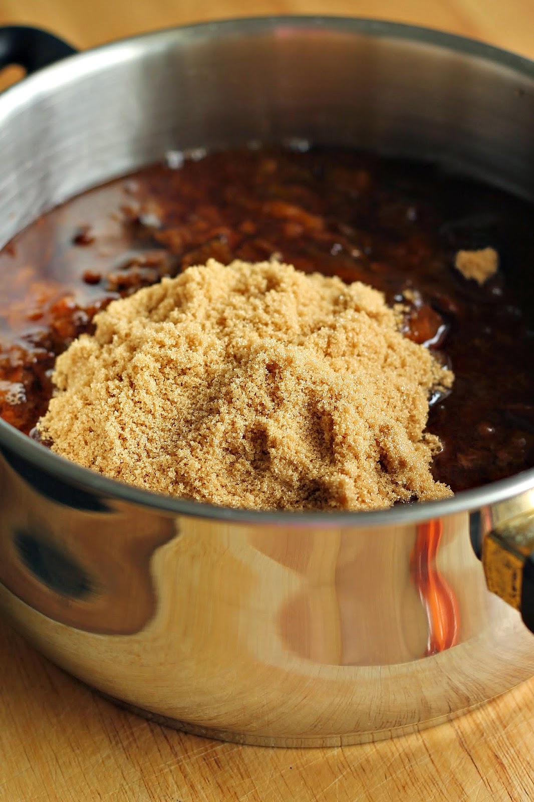 Add 160g of brown sugar (which was 10% of my total pulp weight when I removed it from the slow cooker) to the butter towards the end of the cooking time, this helps sweeten it and preserve it for longer.