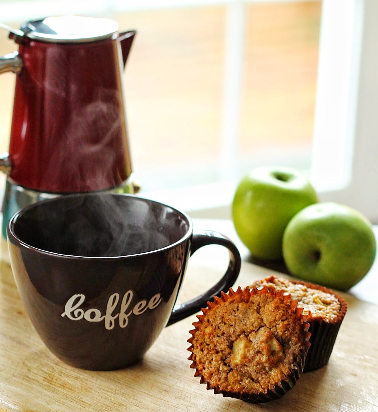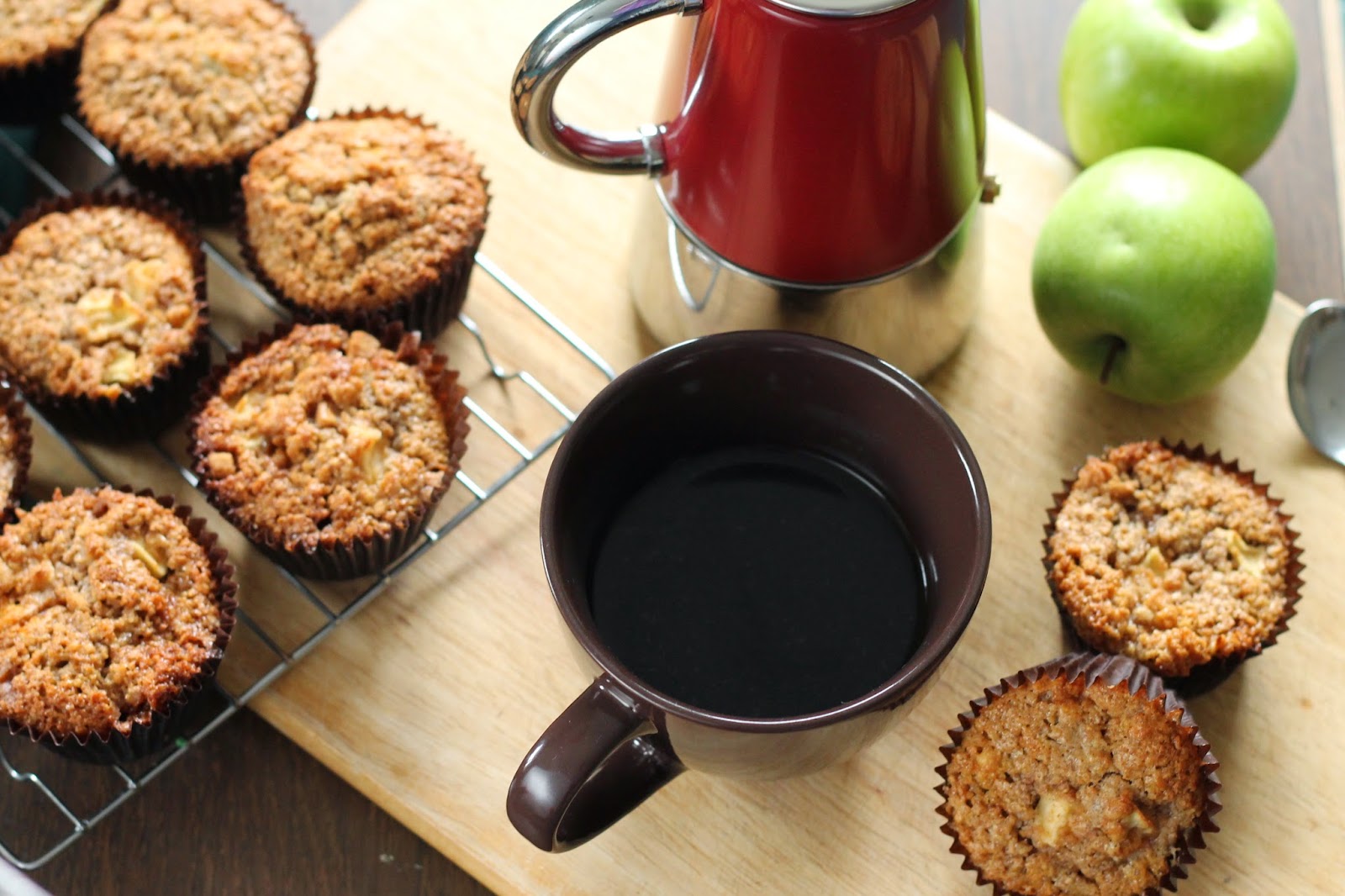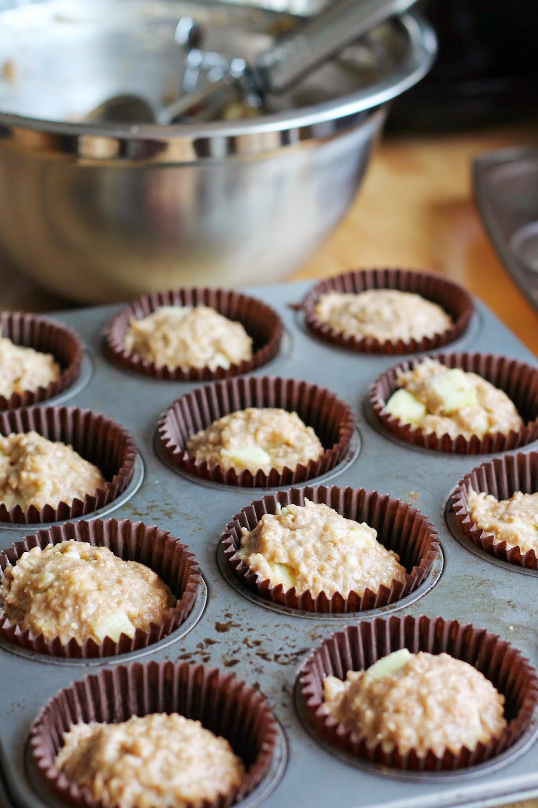 Baking these muffins I used Granny Smith eating apples -had loads in my fruit bowl - and they are surprisingly good. They caramelise slightly on top but remain soft and moist in the centre. Experiment with your choice of apple or even with your choice of fresh fruit. Strawberries and blueberries would also make a nutritious substitute.