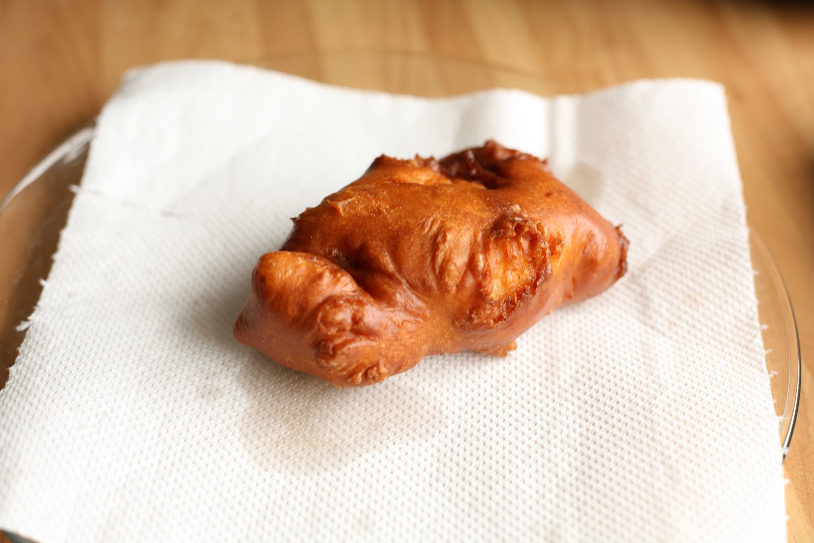 Very slowly lower the fish away from you into the hot oil using a tongs. By lowering the fish slowly into the oil it cooks the batter slightly and prevents it from welding itself to the basket! Cook for 4-8 minutes or until a deep golden brown. Repeat with each fillet.