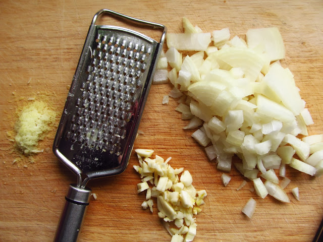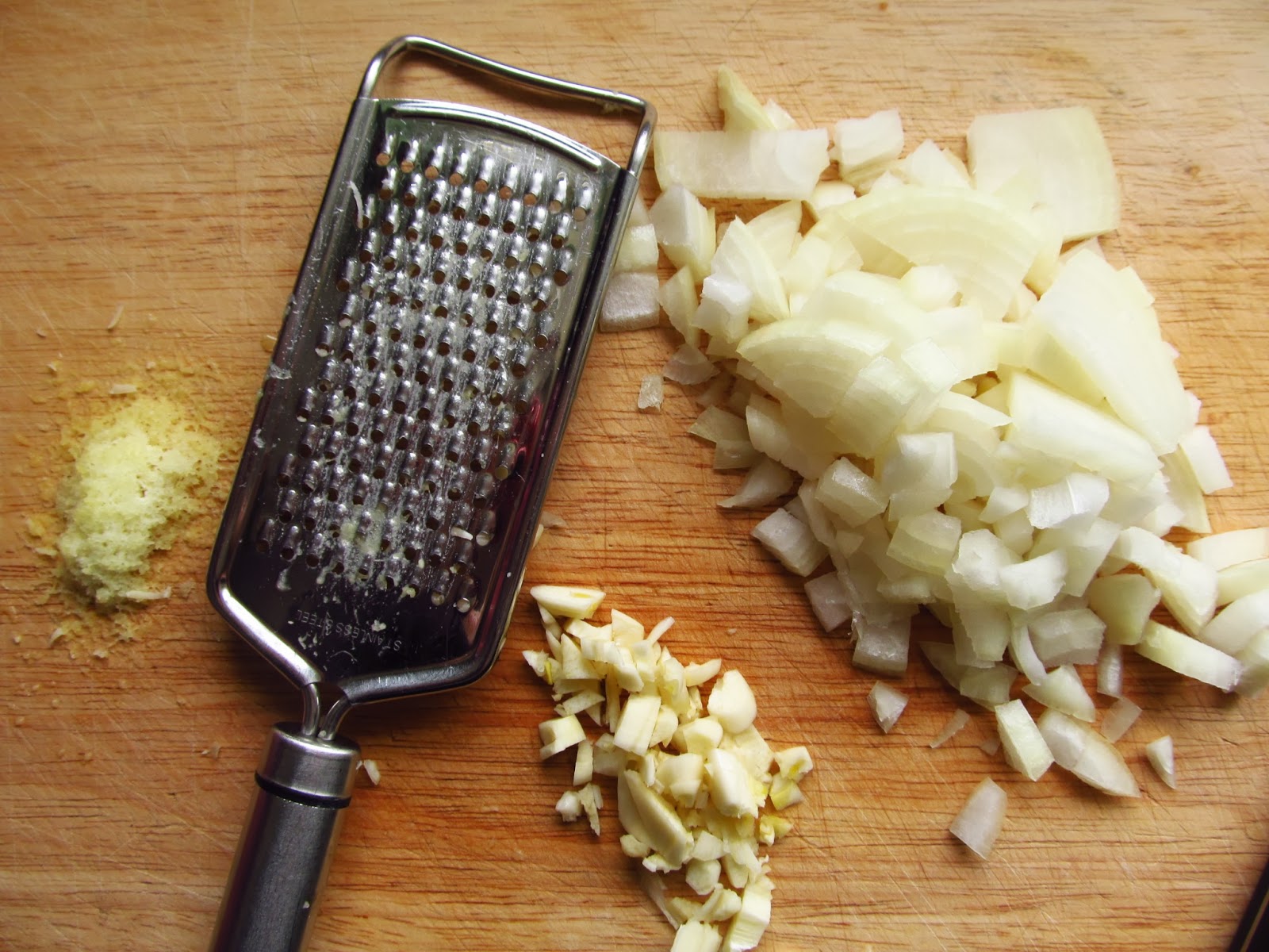 Grate or finely chop the onions, mix everything together in a medium sized bowl. Roll out the pastry on a lightly floured surface into a rectangle roughly 35cm x 25cm.