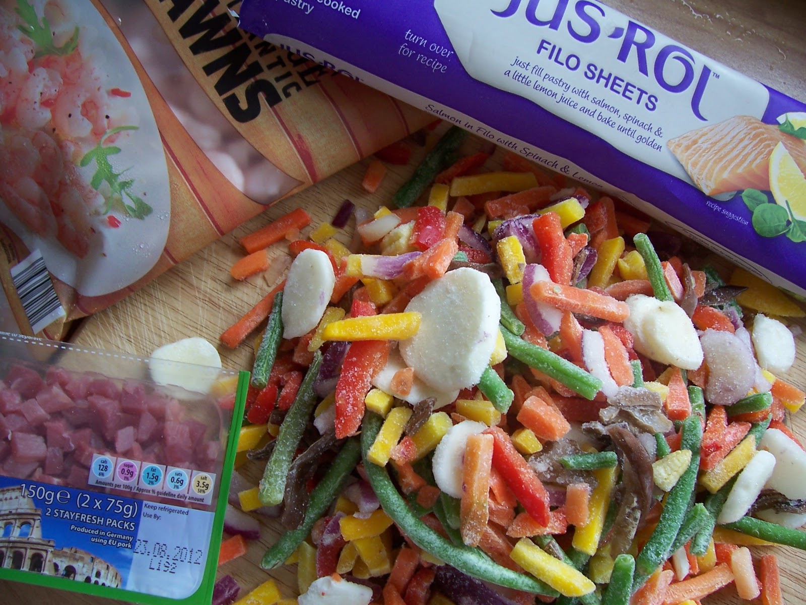 I love Chinese Takeout but some times it's really nice to make your own and for it to be just as tasty and lets face it much healthier. I favour these spring rolls because they are baked and also there is no Asian market locally so proper spring roll sheets are impossible to get, but Filo pastry is in every supermarket freezer cabinet. I also bought Blue Dragon Stir Fry Vegetable Mix (or if you're in a real hurry 400g of frozen stir fry mix with 100g beansprouts) instead of the individual cans for the beansprouts etc. Beware hot cooking liquid, is the enemy of Filo pastry, it will disintegrate before your very eyes if the mix is too wet. To prepare in advance, make and bake the rolls up to a day ahead, then keep chilled. To serve, reheat them at 190°C/gas 5 for about 5 minutes.