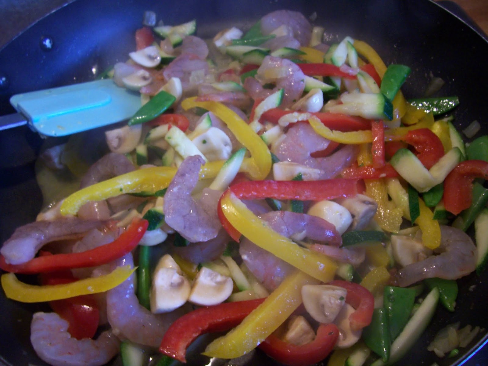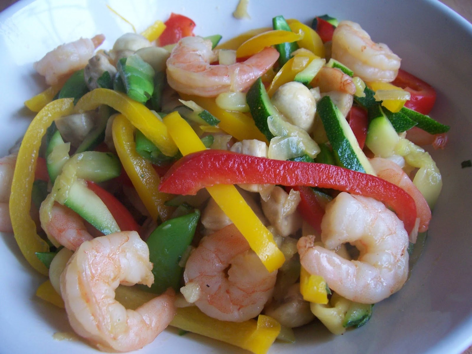 This is a quick and healthy stir fry that I just love to whip up for my family. I think that prawns are just superb because they are low fat and cook really quickly, however this meal works just as well with chicken or beef strips. The key to an evenly cooked stir fry is to cut everything the same size and then cook the crunchier vegetables first, followed by the quicker to cook vegetables. I would recommend that you cook off the chicken and beef first then add the vegetables.