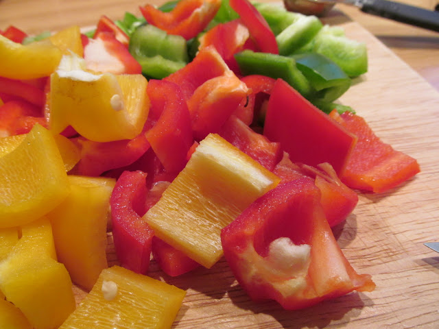 2 Peppers, red, green, orange or yellow, deseeded and cut into chunks of about 3cm/1¼in