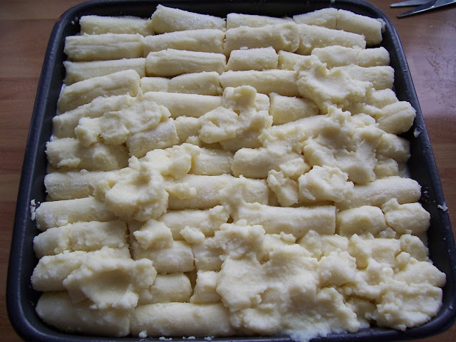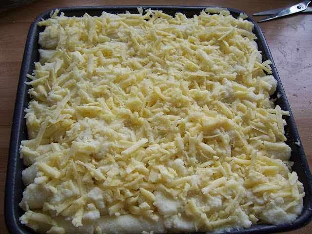 Arrange the defrosted potatoes over the top of the pie.