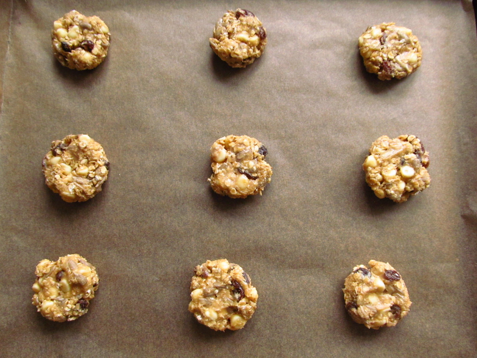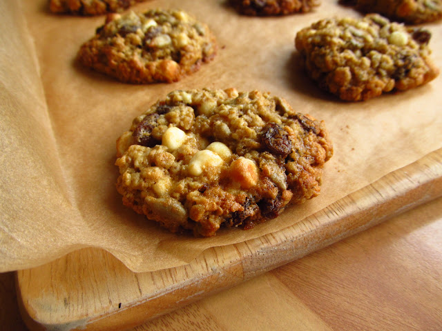 White Chocolate, Oat and Raisin Cookies