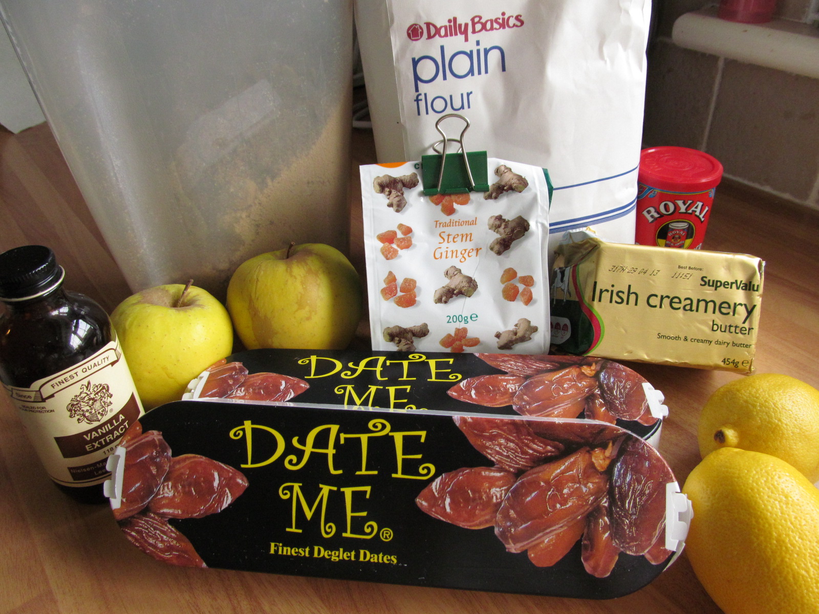 Melt the butter and light brown sugar together in a (large) saucepan and leave to cool slightly. Beat the eggs, ginger, lemon zest and vanilla extract into the butter and sugar.