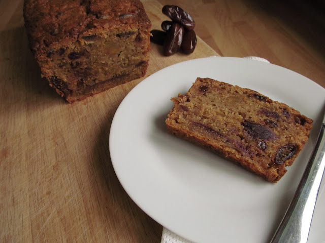 I don't often regard something as tasty and filling as this cake as healthy, but I think this cake has it's fair share of healthy ingredients. Dates are full of carbohydrates which will release their energy slowly throughout the day, so after you coffee break you'll have energy to tackle into the day's long list of jobs. Dates are also a source of fibre, for every 100 g of dates, approximately 8g is fibre and to top it all off they are low in fat!! What more could you ask for from your morning coffee break.