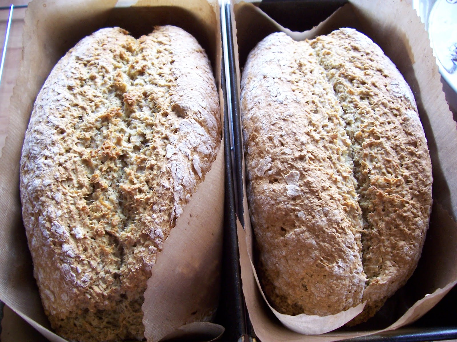 Your brown bread should make a hollow sound when tapped underneath and most importantly wrap the bread in a clean tea towel and cool upside down (it's much easier to slice it later if you let it cool like this).