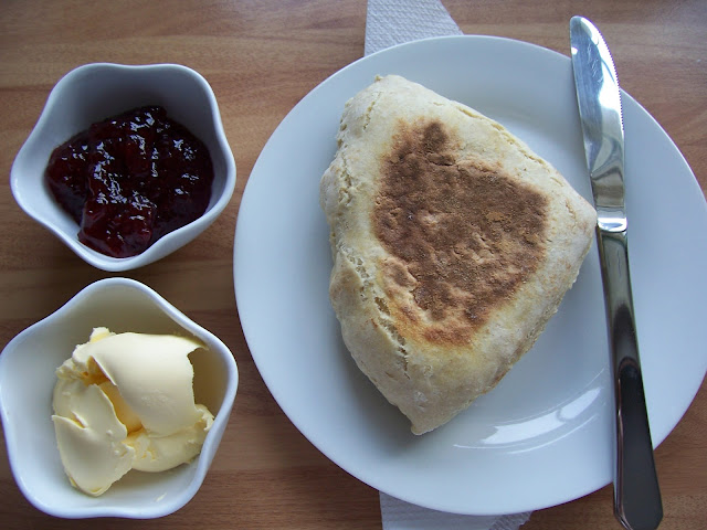 That's how it all started, an innocent plea for help from Katie Bension from North Carolina over the days of Christmas. What was this bread she was talking about, her father remembered his mother making it and he called it "Pan Bread", it was cooked on top of a cooker in a skillet (frying pan). I offered my Potato Bread recipe, but pan bread was thicker so I offered an alternative, my Brown Soda Bread recipe but it is cooked in a oven, so no use. More information was needed, Katie offered this, her grandmother was from Monaghan originally, well it did help because my husband is also from Monaghan so the riddle was solved. It was griddle bread also known as soda farls. My parents then explained that they too remembered their mother's making it and that it was a white soda bread recipe that was cooked in a shallow 3 legged covered pot over an open fire. My father remembers his mother placing hot coals on the lid to cook both top and bottom at the same time. Unfortunately Granny Heffernan's 3 legged pot finished out it's days feeding chickens in the chicken coop. I found this recipe on an Northern Ireland recipe website and this is their history of the elusive bread.
