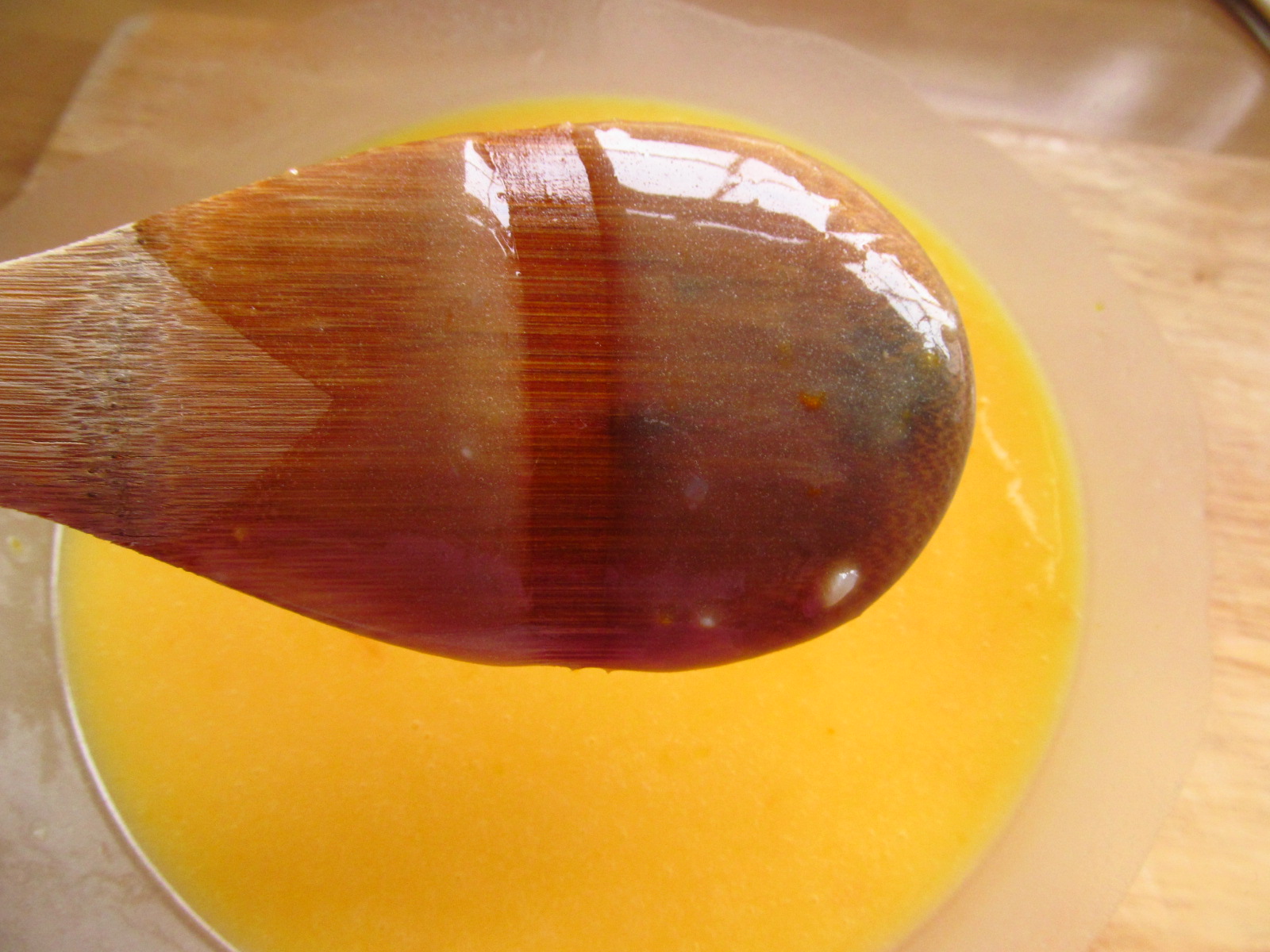 Add the juice from all the fruit to the bowl and combine with a wooden spoon. Place the bowl over a barely simmering (very important) pan of water for 15 to 20 minutes or until the curd coats the back of the spoon.