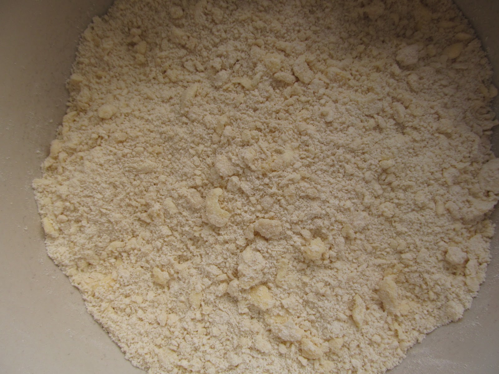 With the tips of your fingers rub the margarine into the flour, lifting the mixture up to let get some air into the finished pastry.When your are finished you should have what is commonly referred to as the breadcrumb stage.