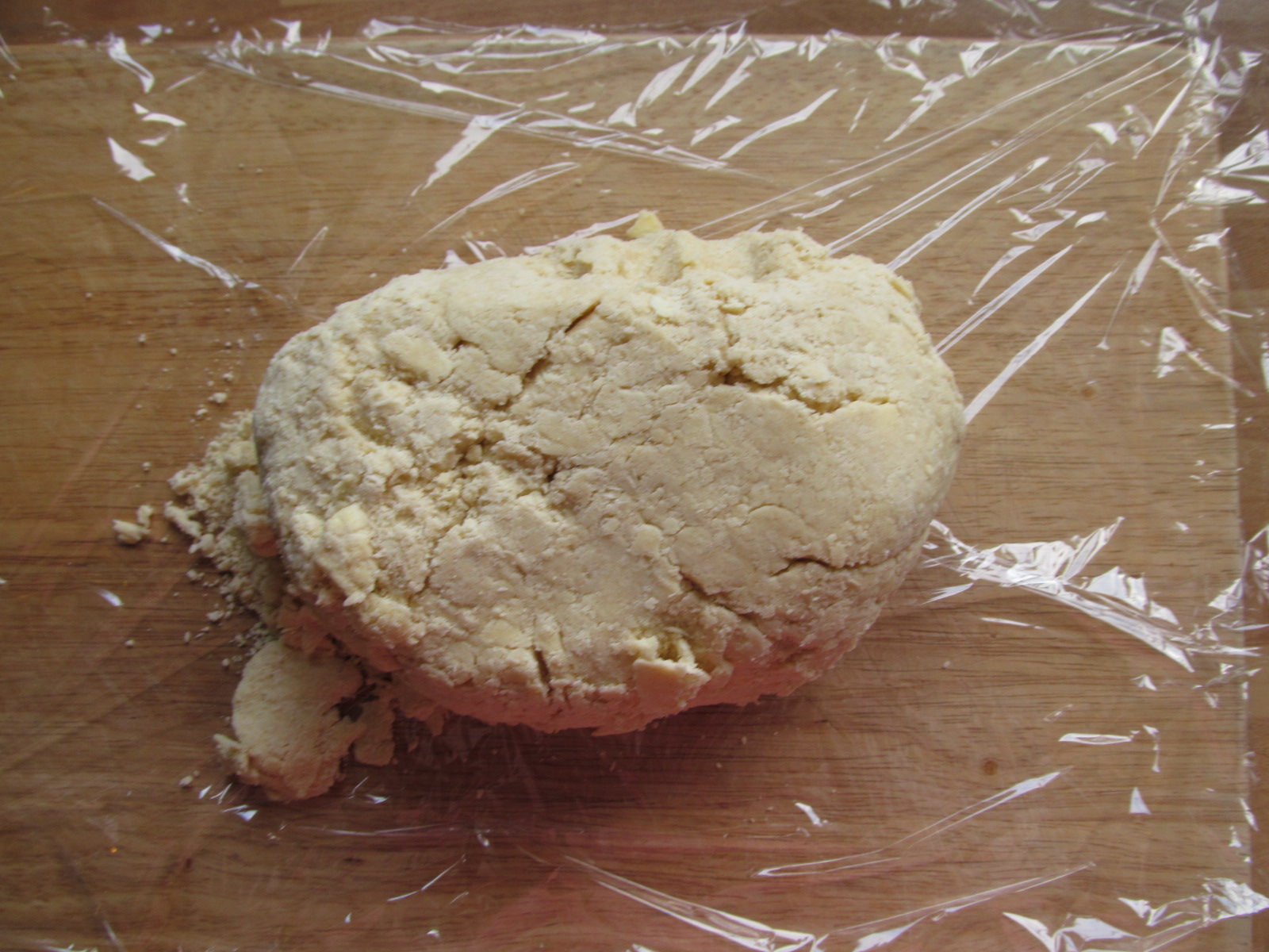 Now after all that work it is time for the pastry to "rest".Wrap it in clingfilm and chill it for 30 minutes before rolling out is the best method. Flatten it our so that it chills evenly.