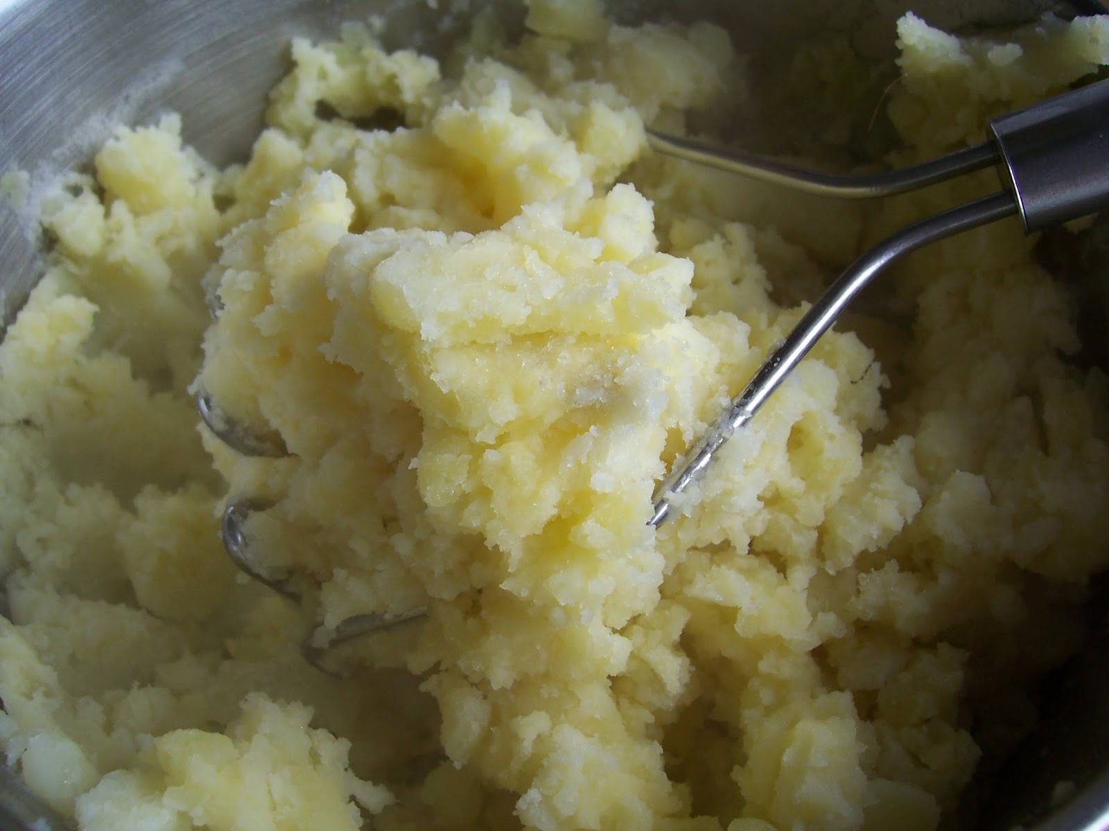 Scoop out the baked out the potatoes and mash with butter and milk (or not!)