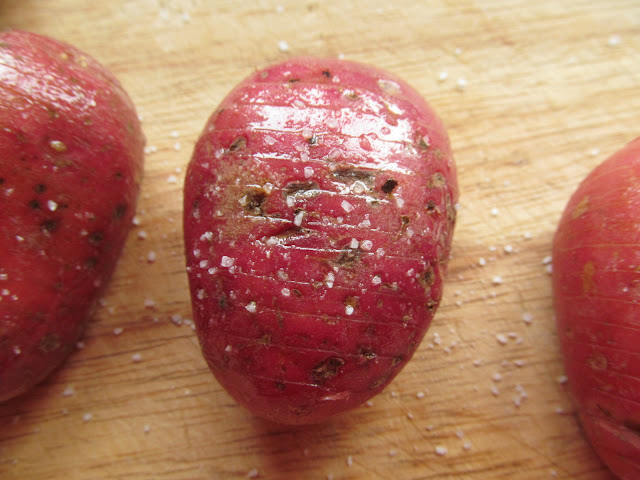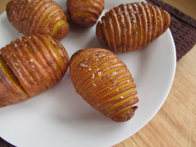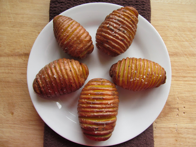 These are not as difficult as they look, in actual fact they are really easy to make. I've been making these for years and didn't know their proper name. You on the other hand will be able to impress your dinner guests with a little trivia. Hasselback potatoes originated in a Swedish restaurant called Hasselbacken, the Stockholm based restaurant prepared the potatoes in the same way, however half way through baking they topped the potatoes with breadcrumbs and more butter, continued baking them until they are golden brown.