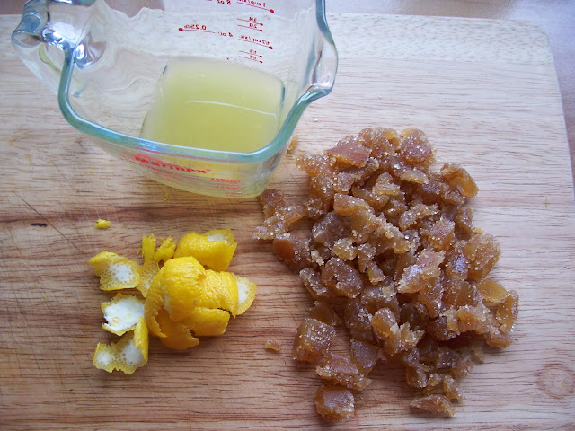 Add the crystallised ginger,fresh ginger or ground ginger, cut into slivers. (I chopped the rind and ginger very finely)