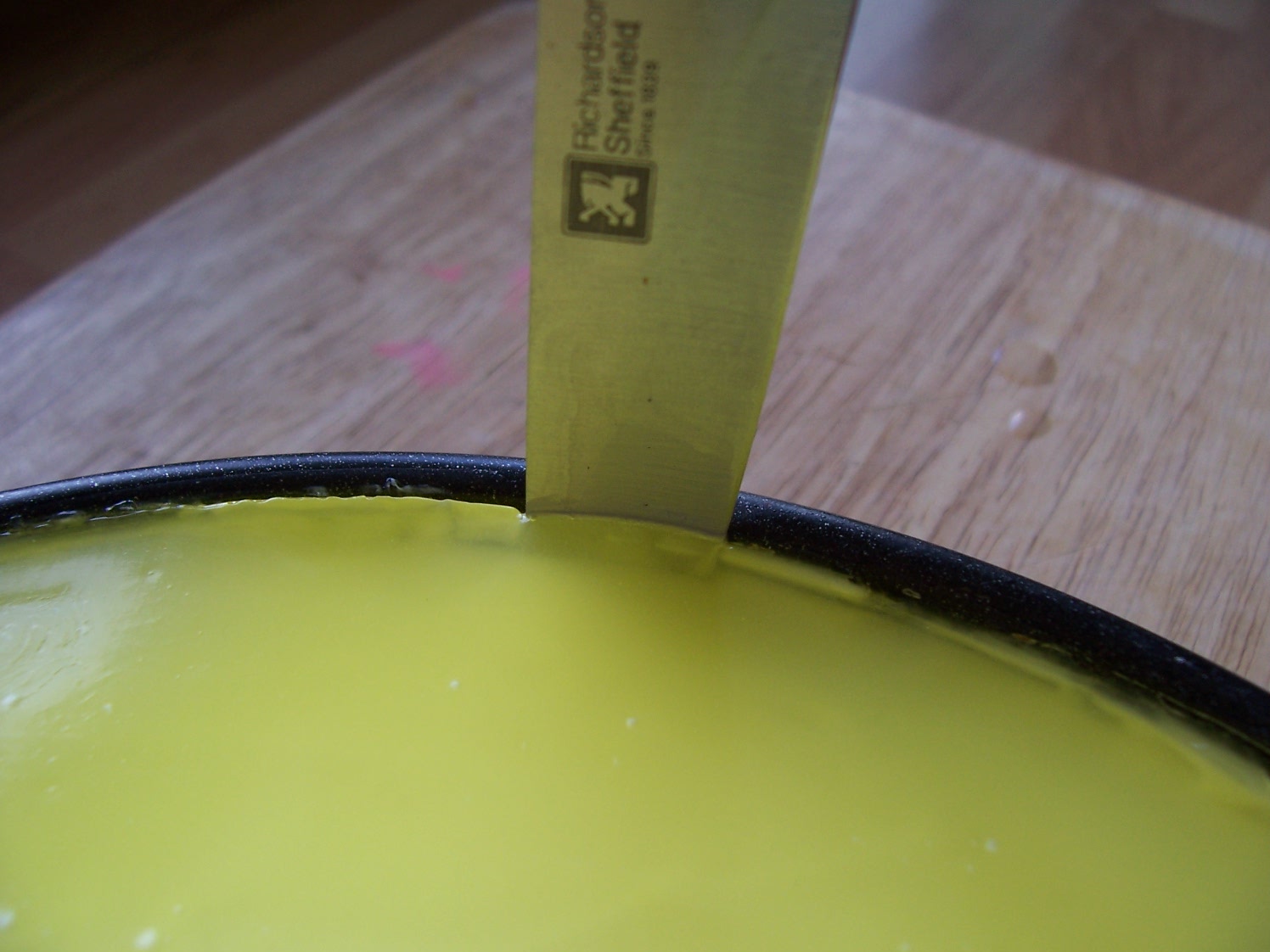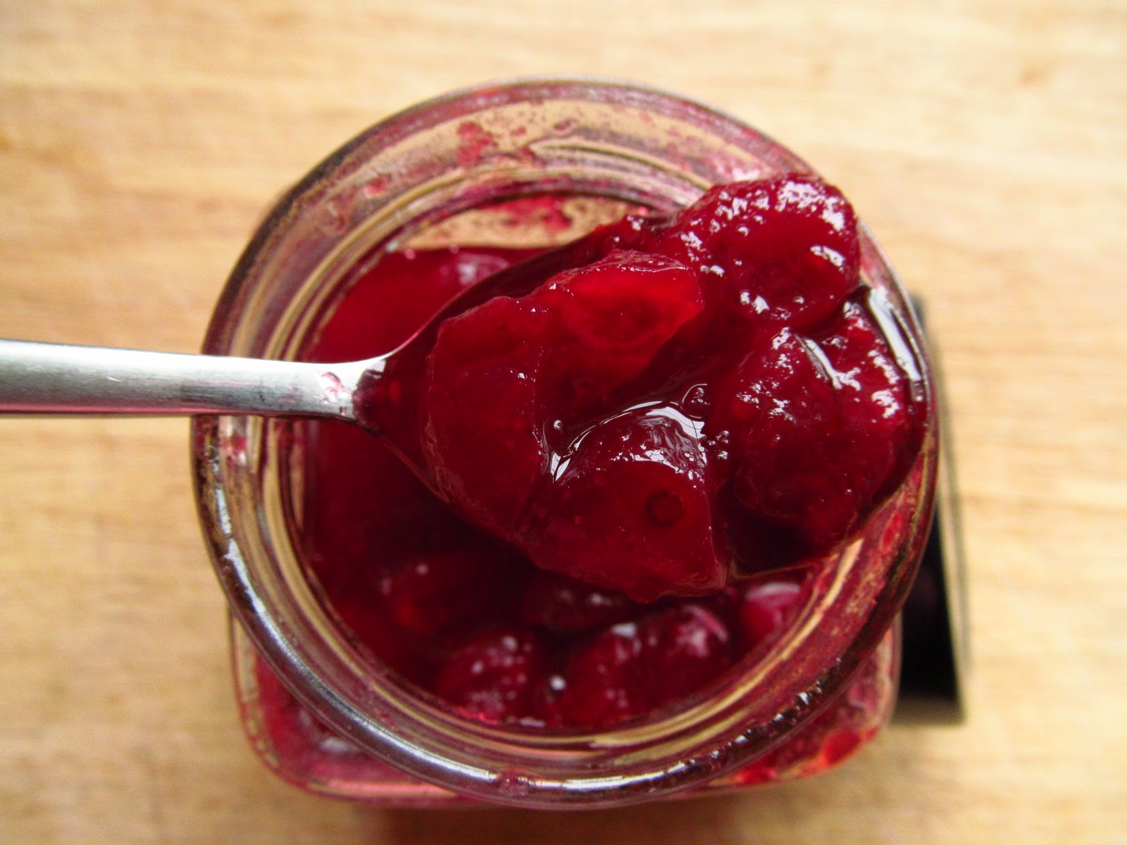 Test for set - pour a little onto a cold saucer (from the freezer), if the edges wrinkle slightly when tipped, the jam is ready. (This was wrinkling, I promise). If it won't wrinkle then boil for another 5 minutes and test again.