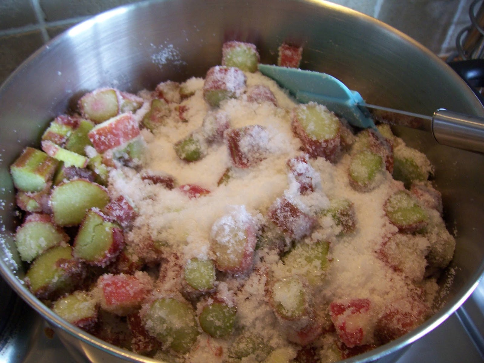 Pour the sugar over the rhubarb and leave for one hour.