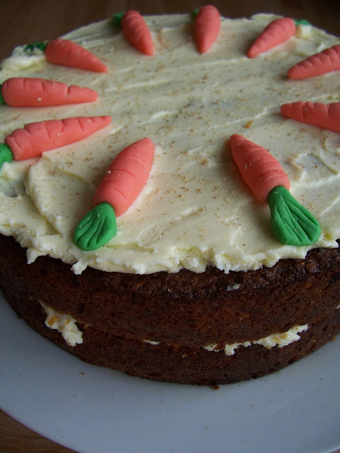 I have tried many, many carrot cakes in my time, but this one is my favourite by far. So good is it that I'm planning to have a slice after I've written this post with a cup of coffee!! I was planning to bake two of these for my children's teachers for the end of the school year as a thank you, but I was over ruled and instead they opted for a chocolate cake, anyway I still think that this would be a beautiful gift for someone special and it's well worth the effort.