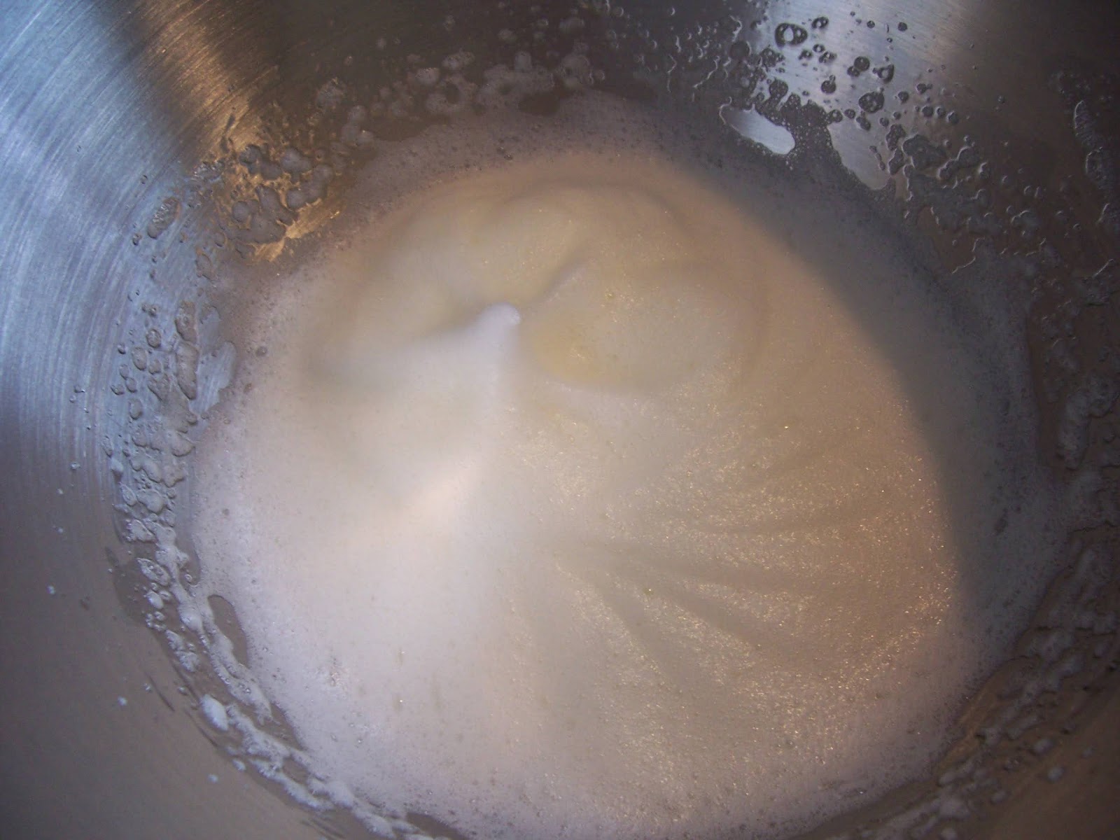 Spoon the whites out of the bowl and put in the butter. Beat until butter is nice and creamy, then add the icing sugar bit by bit until it looks well blended. Then add your salt, vanilla and egg white mixture and beat until it's all nice and incorporated and fluffy.